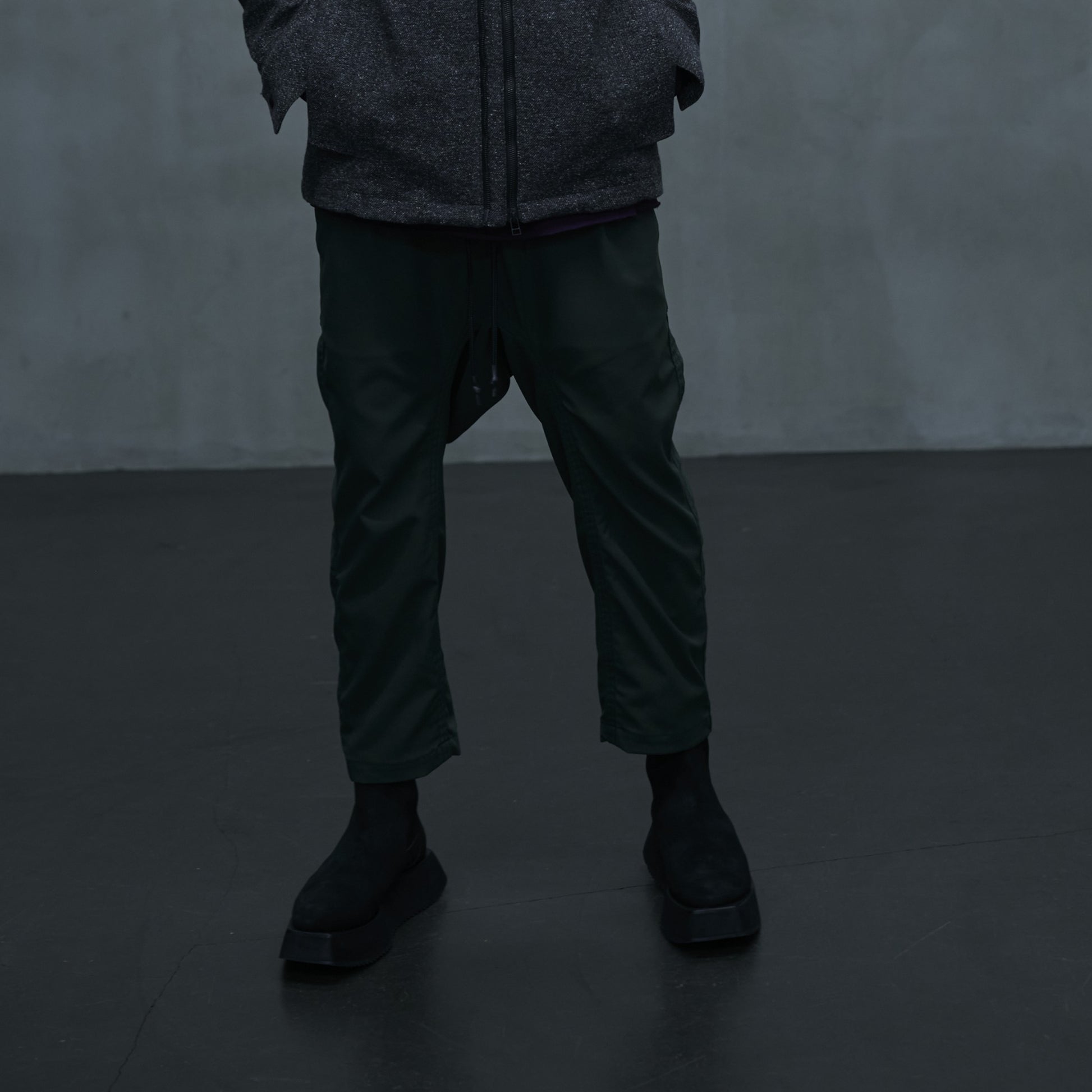 クロップドイージーのアップデートモデル。素材は収縮性の異なる2種類のポリエステル糸を、特殊な混紡技術を使用して生まれた新ストレッチ素材ケアフリージャージで作製しました。独特なタッチ感に加え、膨らみと反発性も兼ね揃えた万能素材。厚さも適度なのでオールシーズン快適です。